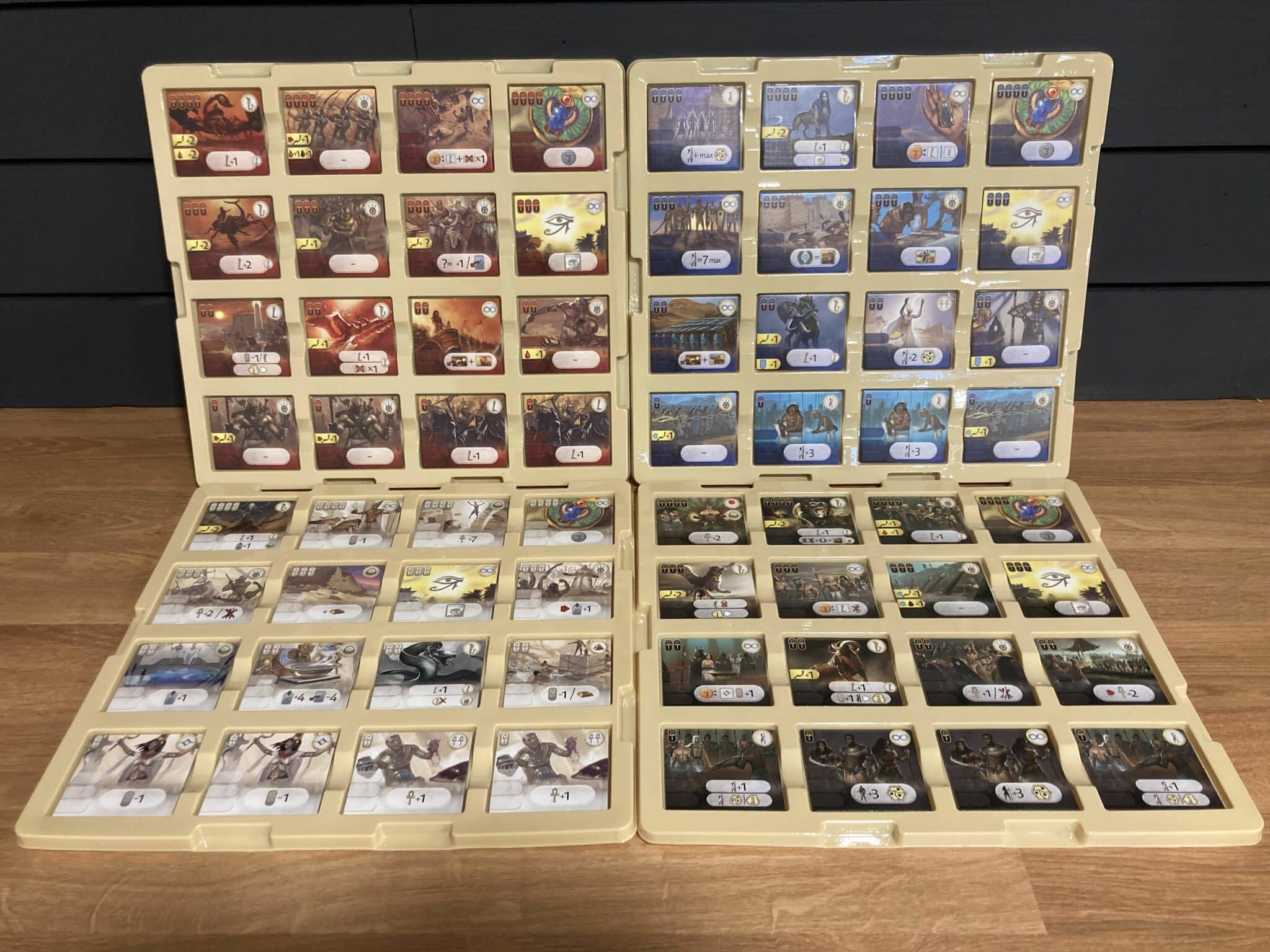 Overall, the aesthetics of the Kemet: Blood and Sand board game work really well and evoke that ancient Egyptian feeling that you’d expect. The Battle cards have a very clean and clear look with their iconography. The Divine Intervention cards are the same way, although those almost feel a little too basic for my tastes.
